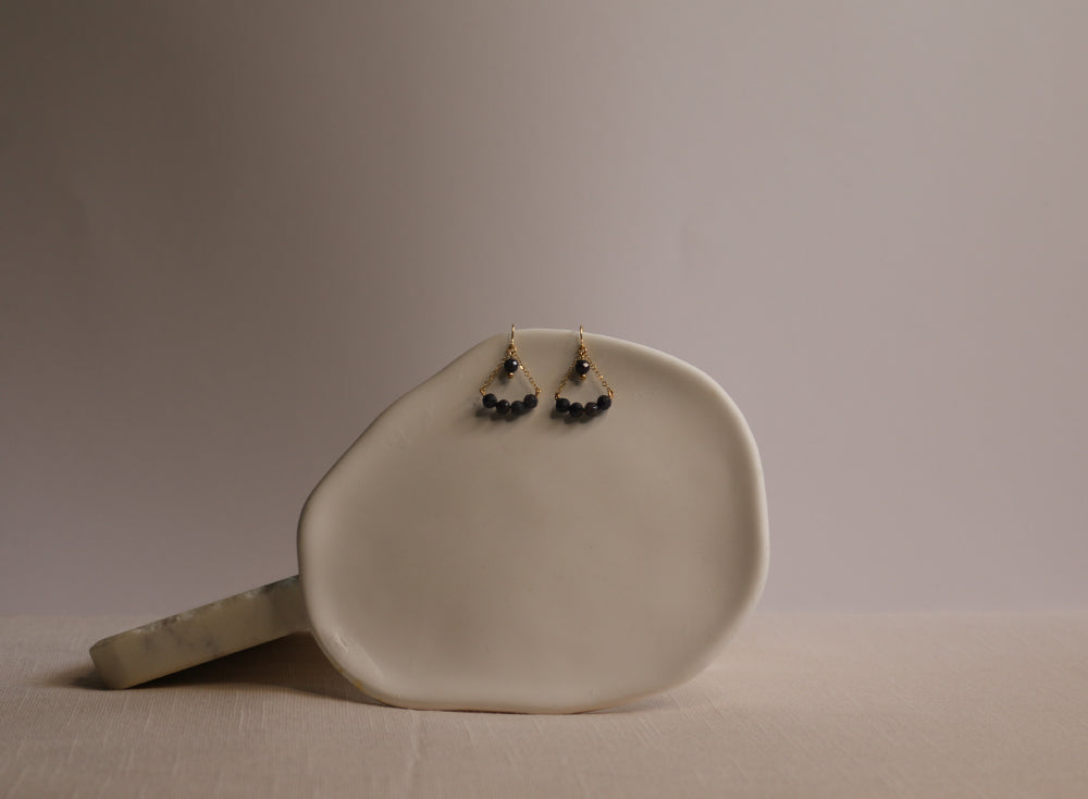 Crafted with deep blue natural sapphires and set in luminous 14K gold-filled settings, these earrings capture the mystery of starlit skies and the strength of a grounded spirit. Their elegant sway and rich hue make them the perfect companion for moments that matter — from everyday elegance to evening enchantment.