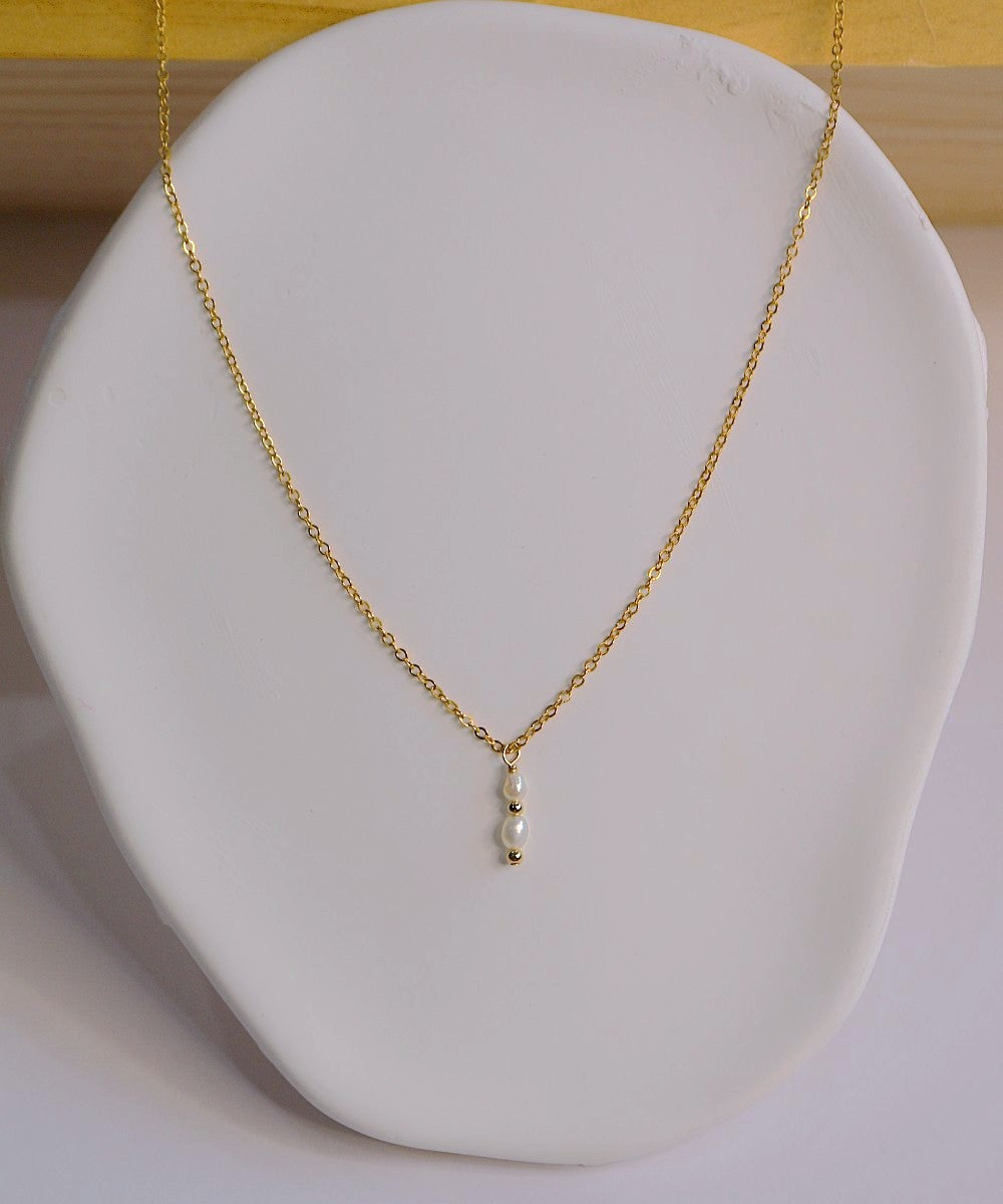 Delicate, luminous, and effortlessly graceful — the Golden Whisper Pearl Necklace is a celebration of quiet elegance. Crafted with a 14K gold-filled chain, this piece features a refined pendant composed of a soft string of 3mm natural pearls, accented with 2mm gold-filled beads that add a subtle golden glow.
