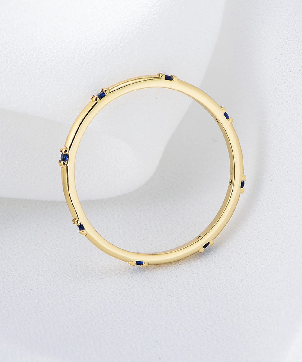 Set in rich 18K gold vermeil over sterling silver, a delicate line of deep blue sapphires shimmers with quiet confidence. The design is minimal yet meaningful — perfect for stacking, wearing solo, or marking a moment that matters.
